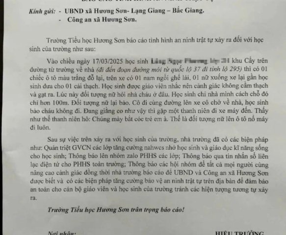 Công an vào cuộc xác minh và khẳng định thông tin lan truyền về việc học sinh lớp 2 ở Bắc Giang bị người phụ nữ đi ô tô dụ dỗ, bắt cóc là sai sự thật.