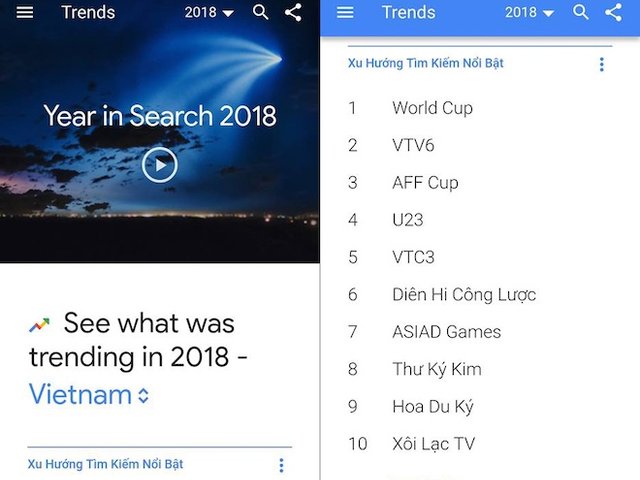 World Cup, VTV6, AFF Cup, U23... là những từ khóa hot nhất năm 2018 trên Google