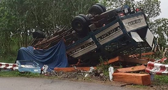 Quảng Ngãi: Xe tải chở gỗ bị lật, 2 vợ chồng tử vong trong cabin