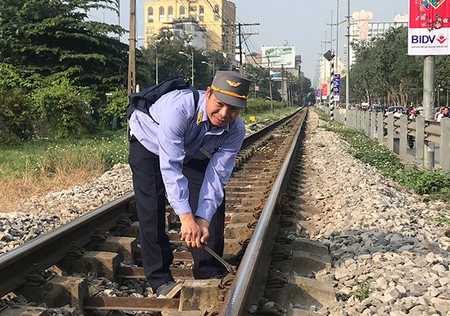 Đêm giao thừa, trời rét buốt, anh Phùng Quang Hưng (44 tuổi) tay cầm cờ lê, tay cầm đèn pin lặng lẽ đi dọc cung đường sắt qua nội thành Hà Nội.