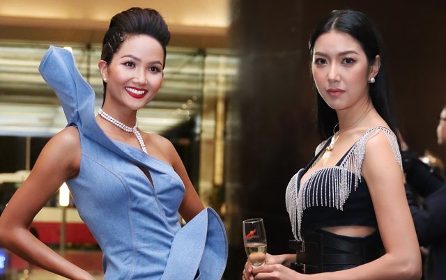 Hoa hậu H'Hen Niê và á hậu Thúy Vân cùng tham gia bữa tiệc trước thềm Tuần lễ thời trang quốc tế Việt Nam, tối 28/10.