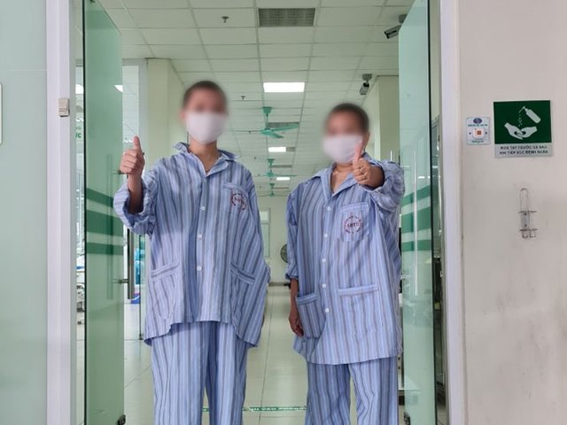 Bệnh nhân 6732 và 7910 được chuyển khỏi khoa Hồi sức tích cực, Bệnh viện Bệnh nhiệt đới Trung ương, hồi phục sau gần một tháng điều trị.