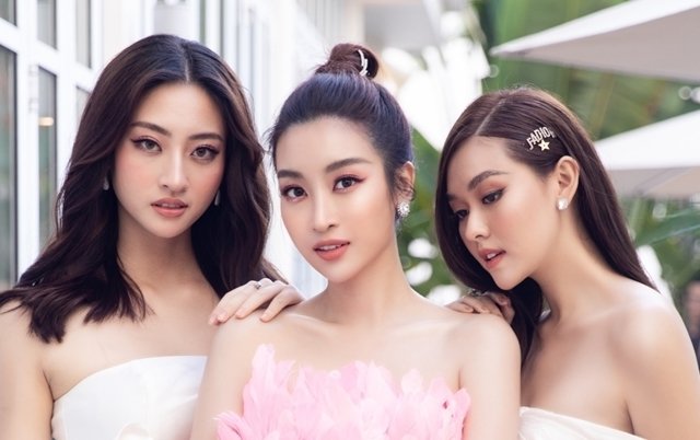 Hoa hậu Đỗ Mỹ Linh, Lương Thùy Linh và á hậu Tường San cùng khoe vai gợi cảm tại một sự kiện chiều 5/3.