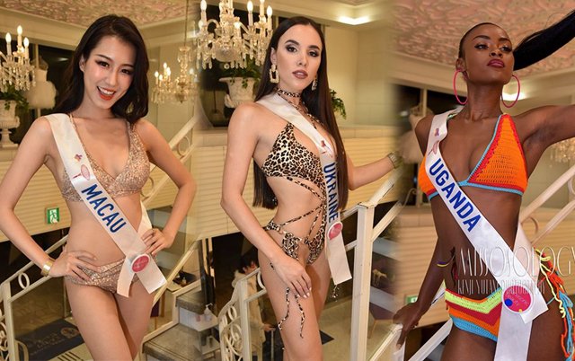 Hơn 80 người đẹp của Miss International 2019 trải qua phần thi trình diễn và chụp hình với bikini tại khách sạn ở Tokyo chiều 7/11.