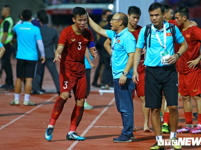 HLV Park Hang-seo to tiếng với Ban huấn luyện tuyển Thái Lan sau tình huống Bùi Tiến Dũng bị đau nằm sân.