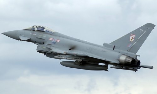Chiến đấu cơ Typhoon Anh thực hiện màn diễn tập đánh chặn gần chuyên cơ đang chở Thủ tướng Theresa May.