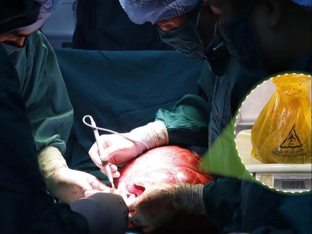 Các bác sĩ Bệnh viện Phụ Sản Hà Nội vừa thực hiện phẫu thuật khối u xơ tử cung nặng hơn 10kg chiếm toàn bộ ổ bụng và đè đẩy tử cung của bệnh nhân ra sau.