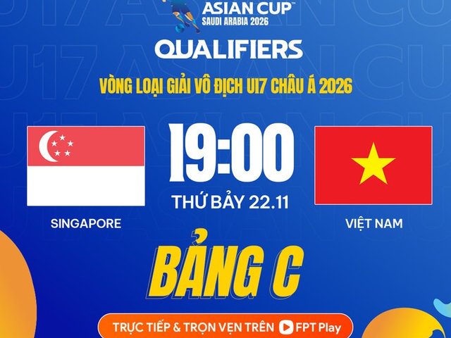 Đầy đủ thông tin lịch thi đấu, kênh trực tiếp bóng đá U17 Việt Nam vs U17 Singapore thuộc vòng loại giải U17 châu Á 2026.