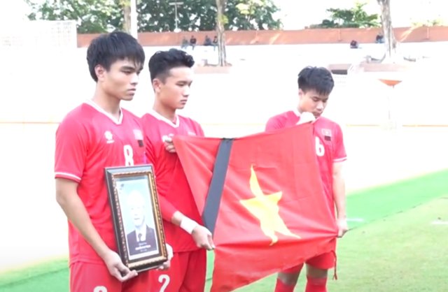 Chiều 21/7, U19 Việt Nam cử hành phút mặc niệm và đeo băng tang để tưởng nhớ Tổng Bí thư Nguyễn Phú Trọng tại giải U19 Đông Nam Á 2024.
