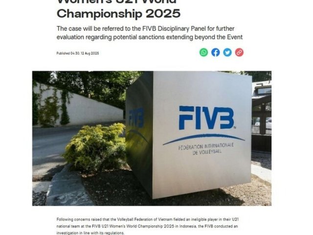 Liên đoàn bóng chuyền thế giới (FIVB) thông báo đặc biệt về trường hợp vi phạm của 1 VĐV Việt Nam tại giải bóng chuyền U21 nữ thế giới 2025.