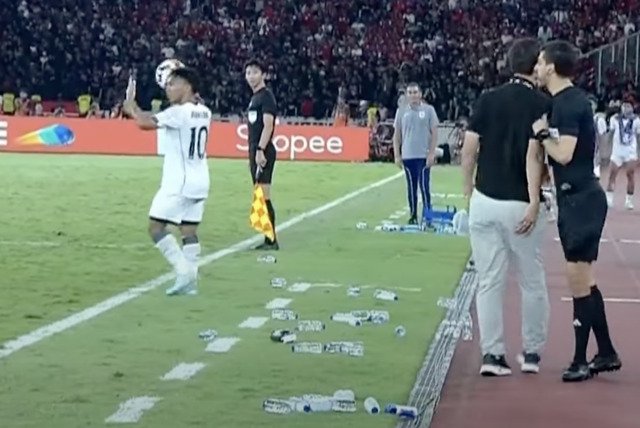 U23 Việt Nam rải chai nước ngăn đòn ném biên 'sát thủ' của U23 Indonesia?