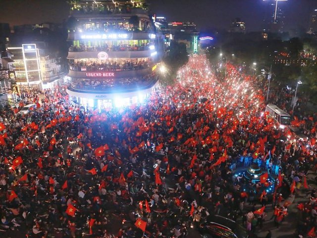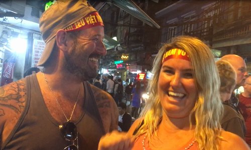 Khách du lịch nước ngoài ở Hà Nội phấn khích trước không khí ăn mừng của người dân sau chiến thắng của đội tuyển bóng đá U23 Việt Nam.