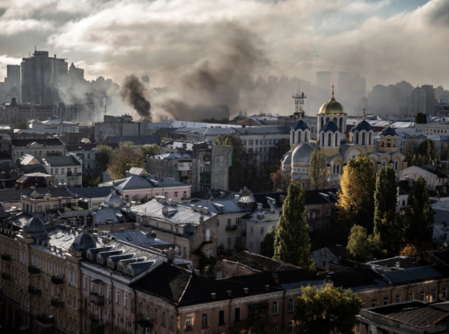 Theo New York Times, hai tiếng nổ lớn vang lên ở trung tâm Kiev hôm 17/10 sau còi báo động không kích.