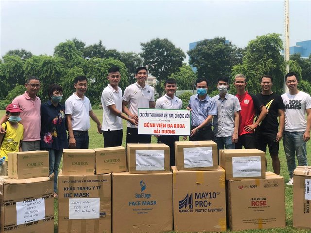 Văn Hậu , Quang Hải và Đức Chiến... đại diện cầu thủ Việt Nam cùng các cổ động viên trao tặng tiền và vật phẩm hỗ trợ cho Hải Dương phòng chống dịch COVID-19.