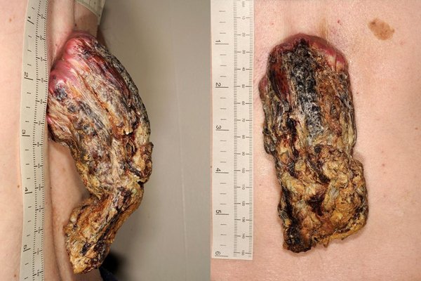 Một bệnh nhân ung thư đã phải cắt bỏ sừng dài 14 cm mọc giữa lưng sau 3 năm “bỏ quên”.