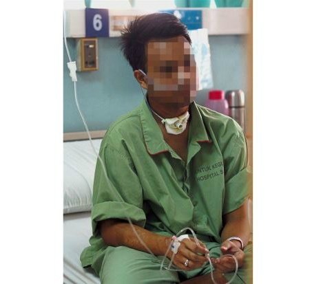 <strong>Sau bảy năm hút thuốc, Muhammad Faid (Malaysia) bị ung thư miệng và phải cắt bỏ ba phần tư lưỡi.</strong><br />