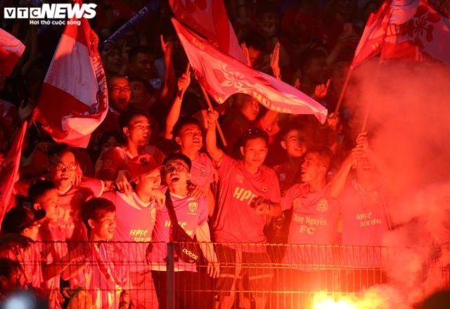 Dù đã thắt chặt an ninh và kiểm tra kỹ lưỡng, nhưng ban tổ chức sân Hàng Đẫy vẫn để cổ động viên đốt pháo sáng cháy rực trên khán đài.