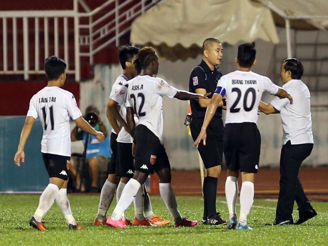 HLV Nguyễn Quốc Tuấn đề nghị tổ trọng tài xem lại các quyết định, nếu không muốn bị HAGL đề nghị Ban tổ chức V-League vào cuộc.