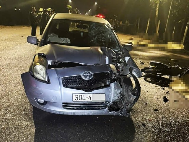 Xe máy va chạm ô tô ở Hà Nội, 3 thanh niên tử vong
