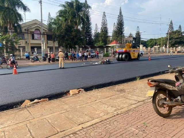 Quá trình thi công Quốc lộ 19, tài xế điều khiển xe lu đã va chạm với xe máy đi từ đường nhánh ra khiến 1 cháu bé tử vong.
