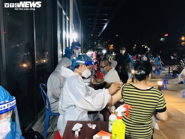 Để đẩy nhanh tiến độ tiêm vaccine COVID-19, UBND quận 8 (TP.HCM) tổ chức tiêm buổi đêm cho người dân trên địa bàn tại điểm tiêm chung cư Giai Việt, phường 5.