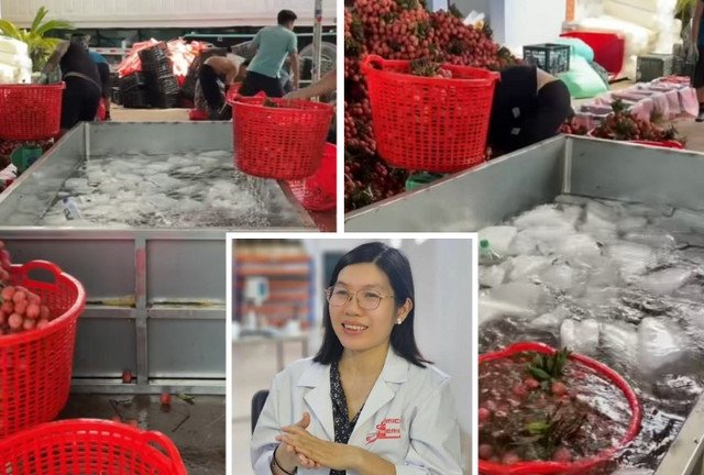 huyên gia giải oan cho thao tác ngâm vải thiều mới thu hoạch vào thùng nước đá trong clip gây xôn xao mạng xã hội, cho biết đây là mẹo bảo quản vải hiệu quả.