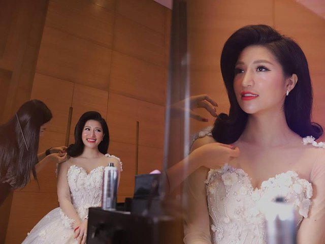 Vân Navy mặc váy đính 999 bông hồng lên xe hoa với chồng doanh nhân