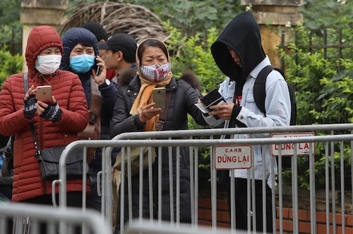 Người hâm mộ xếp hàng trong gió rét chờ nhận vé chung kết
