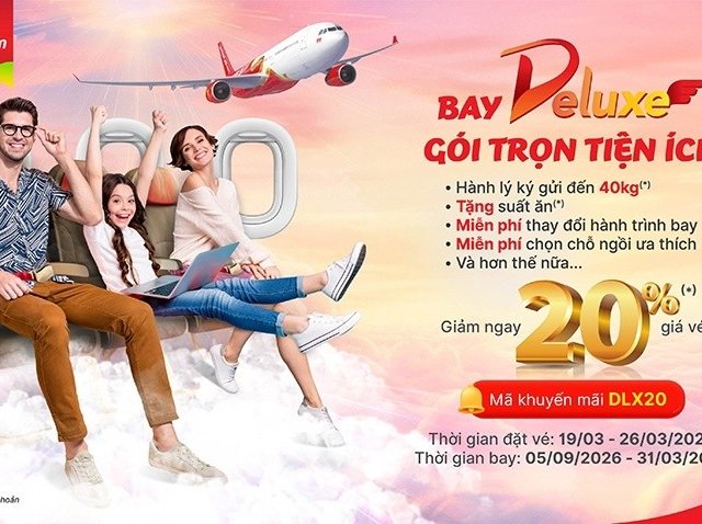 Nhằm mang đến những hành trình bay thuận tiện, đáp ứng nhu cầu di chuyển của người dân và du khách, Vietjet dành tặng tuần lễ ưu đãi hấp dẫn với hàng triệu vé Eco giá từ 0 đồng (chưa bao gồm thuế, phí) (*) và giảm 20% giá vé Deluxe (chưa bao gồm thuế, phí) khi nhập mã “DLX20”, áp dụng từ ngày 19/03/2026 đến 26/03/2026 (GMT+7).