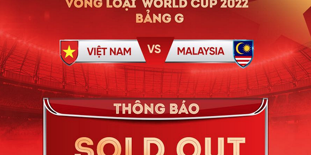 22h27 ngày 19/9, VFF tuyên bố bán xong số vé online trận Việt Nam vs Malaysia trong khuôn khổ vòng loại World Cup 2022 khu vực châu Á.
