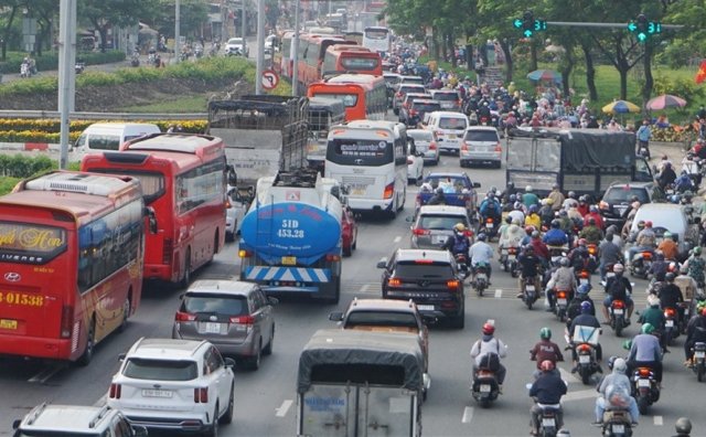 Hàng vạn người đi xe máy về quê đón Tết khiến cửa ngõ miền Tây (huyện Bình Chánh, TP.HCM) ùn ứ, tắc nghẽn.