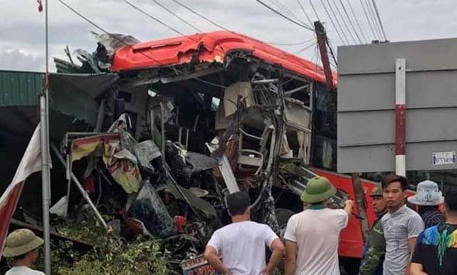 Tránh xe tải đi cùng chiều, xe khách giường nằm chở hơn 20 người lao vào nhà dân ở Thanh Hoá, tài xế bị thương nặng.