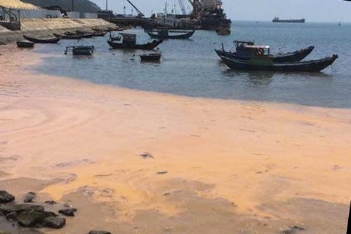 Người dân xã Quảng Đông (Quảng Trạch, Quảng Bình) phát hiện vệt nước màu đỏ xuất hiện ở bờ biển thuộc xã Thọ Sơn.