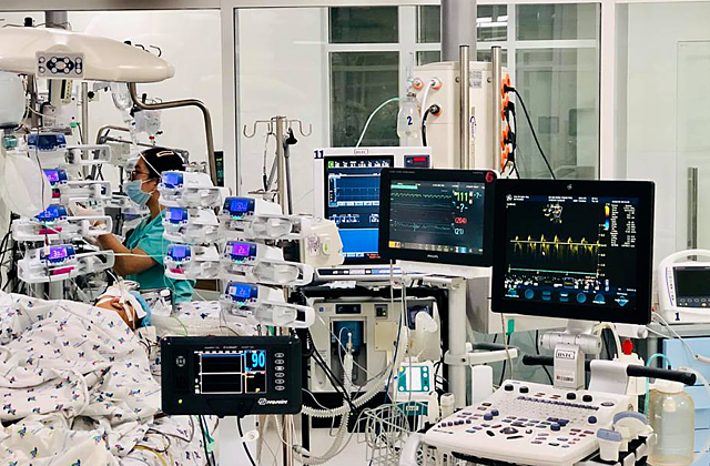 Căn phòng cách ly yên ắng, chỉ có tiếng máy móc hỗ trợ hô hấp, chạy tim phổi nhân tạo cho bé Ngọc Duy.