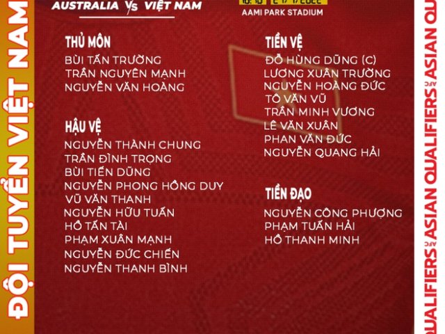 HLV Park Hang Seo chốt danh sách 24 cầu thủ đội tuyển Việt Nam tham dự trận đấu với Australia.