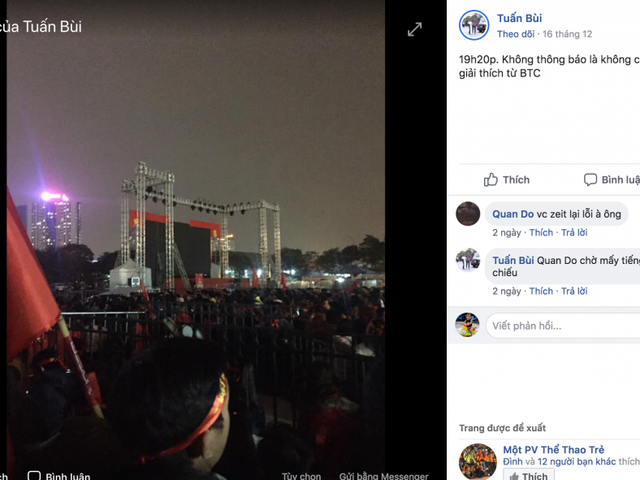 LĐBĐ Việt Nam khiến rất nhiều cổ động viên tức giận khi khu vực fanzone bên ngoài sân Mỹ Đình không được phát sóng trực tiếp trận chung kết AFF Cup 2018 trên màn hình lớn như thông báo từ trước.