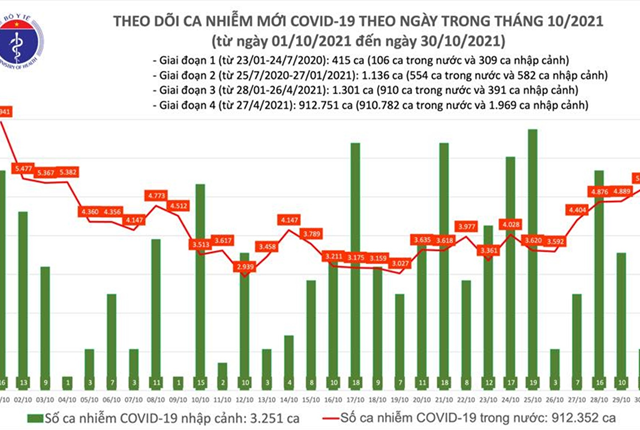 Ngày 30/10, Việt Nam thêm 5.227 ca COVID-19, tăng 335 ca