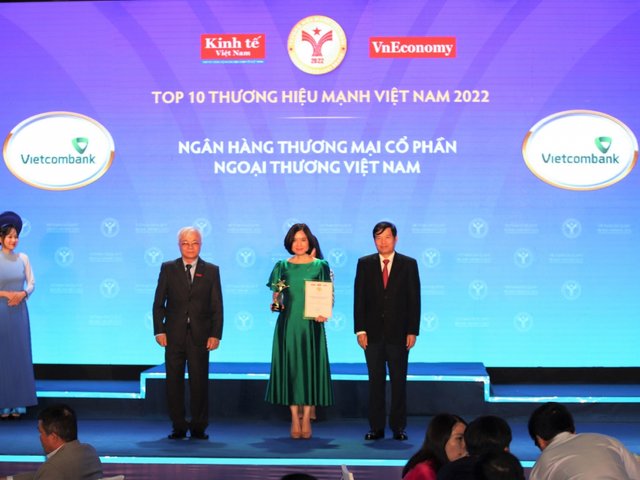 Ngày 12/10/2022, Tạp chí Kinh tế Việt Nam - VnEconomy (Vietnam Economic Times) đã tổ chức Lễ Công bố và vinh danh Thương hiệu mạnh Việt Nam 2022. Vietcombank vinh dự lần thứ 9 liên tiếp nằm trong danh sách Top 10 Thương hiệu mạnh Việt Nam.