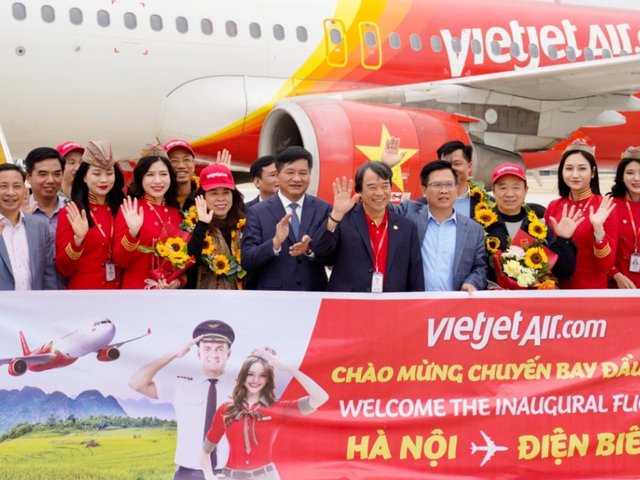 Vietjet vừa khai trương đường bay mới kết nối Điện Biên với Thủ đô Hà Nội để mừng kỷ niệm 70 năm chiến thắng Điện Biên Phủ lừng lẫy khắp năm châu.