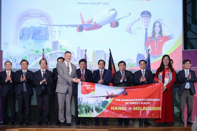 Sáng 5/3, tại Diễn đàn Doanh nghiệp Việt Nam - Australia 2024, Vietjet đã công bố đường bay mới kết nối Melbourne, Australia với Thủ đô Hà Nội, Việt Nam, đáp ứng nhu cầu di chuyển giữa hai thành phố trung tâm hàng đầu của hai nước.
