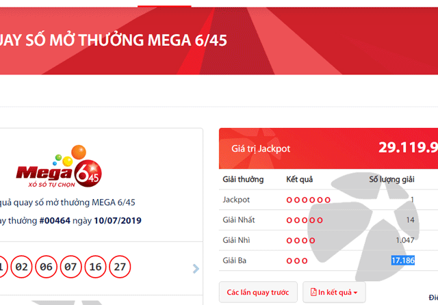 Giải độc đắc Jackpot trị giá gần 32 tỷ đồng của xổ số Vietlott loại hình Mega 6/45 tối nay đã tìm thấy chủ nhân may mắn trúng thưởng. Cách đây 3 hôm, Vietlott cũng xác định có khách hàng trúng giải trị giá hơn 47 tỷ đồng.