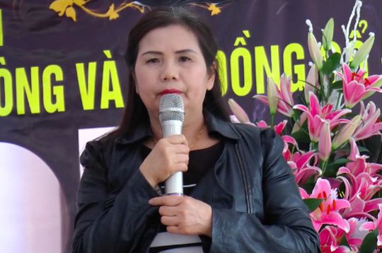 Bà Nguyễn Thị Quý, Phó Tổng giám đốc Vinaca, bật khóc khi kể về hành trình bà nói là chữa khỏi bệnh ung thư hoàn toàn nhờ dùng các sản phẩm do Vinaca sản xuất.