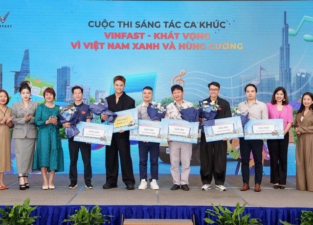 Cuộc thi sáng tác ca khúc “VinFast - Khát vọng Vì Việt Nam Xanh và Hùng cường” đã tìm ra 8 tác phẩm xuất sắc nhất để trao giải Nhất - Nhì - Ba.