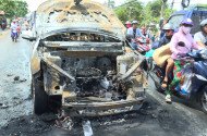 Cha ôm con 8 tuổi thoát khỏi ôtô trước khi xe bốc cháy dữ dội