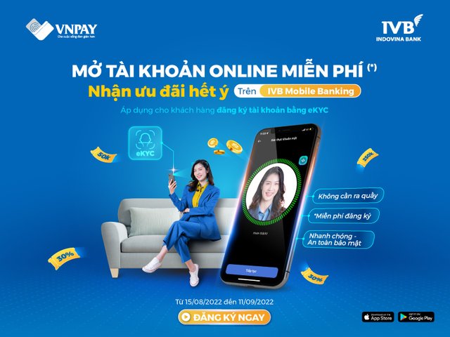 Định danh điện tử (eKYC) mở tài khoản IVB Mobile Banking trực tuyến giúp người dùng không cần tới ngân hàng, tiết kiệm thời gian và nhận ưu đãi hấp dẫn tới 250.000 đồng.