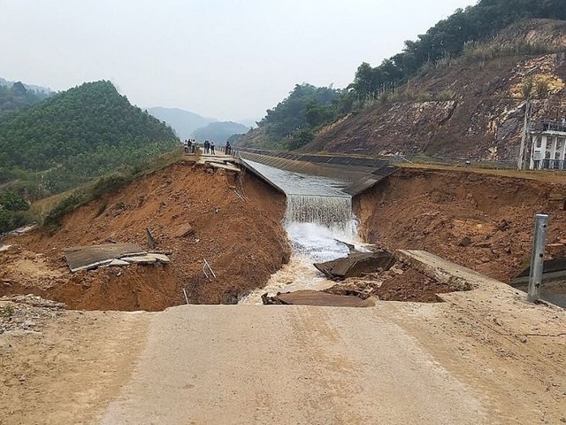 Khoảng 50 m bờ bao tuyến chính kênh bắc sông Chu - nam sông Mã qua xã Phùng Minh (huyện Ngọc Lặc) bị đứt gãy.