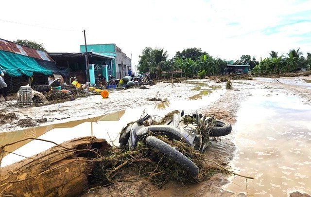 Sau khi xảy ra vụ vỡ hồ chứa nước, nhiều cây cối, đất đá theo dòng nước đổ xuống khu dân cư ở xã Tuy Phong (Lâm Đồng) khiến người dân vô cùng bàng hoàng.