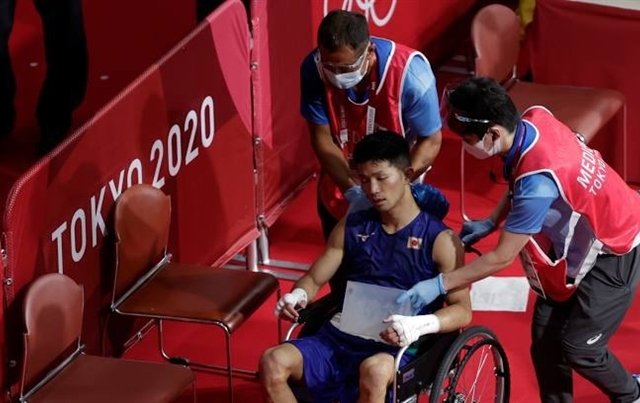 Võ sĩ Ryomei Tanaka (Nhật Bản) được trọng tài xử thắng trước đối thủ Yuberjen Martinez (Colombia) ở tứ kết boxing hạng ruồi, dù anh phải rời sàn đấu bằng xe lăn.