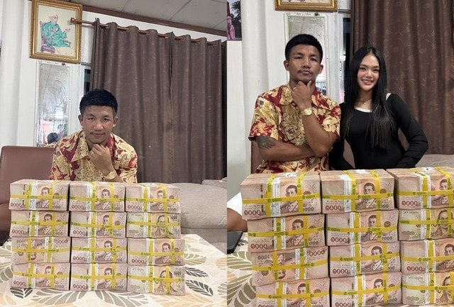 Võ sĩ Rodtang Jitmuangnon mang vali ra ngân hàng rút 12 triệu baht (gần 9 tỷ đồng) tiền mặt mang về tặng vợ và gia đình.