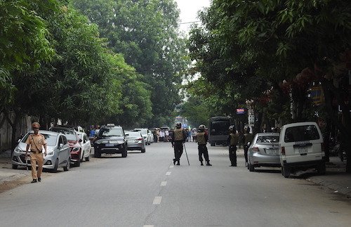 Cảnh sát ngăn đường, bố trí các tay súng tại nóc tòa chung cư hướng về vị trí nghi phạm đang cố thủ ở thành phố Vinh.